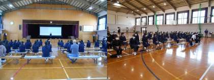 明日が修了式という事で,1,2年生は体育館で学年末の「学年集会」を実施しました。