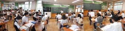 ※本日の授業の様子です,写真は上から1年生・1組と2年生・3年生の順です。