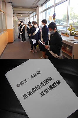 現在,生徒会役員選挙を実施中です。生徒会長をはじめ11の役職に14人が立候補してくれました。これまでの伝統を引き継ぎ、これからの岡崎中学校をよりよい学校にしたいという思いを持っている人がいることを大変うれしく思います。