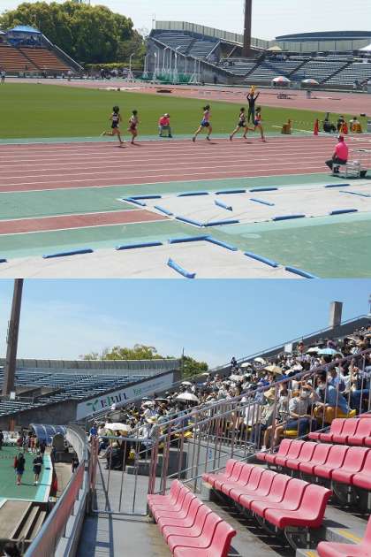 5月5日(祝),晴天の西京極総合運動公園にて陸上競技の春季大会が開催されました。2年ぶりの有観客での大会となったのでメインスタジアムには多くの保護者の方が応援に来られていました。