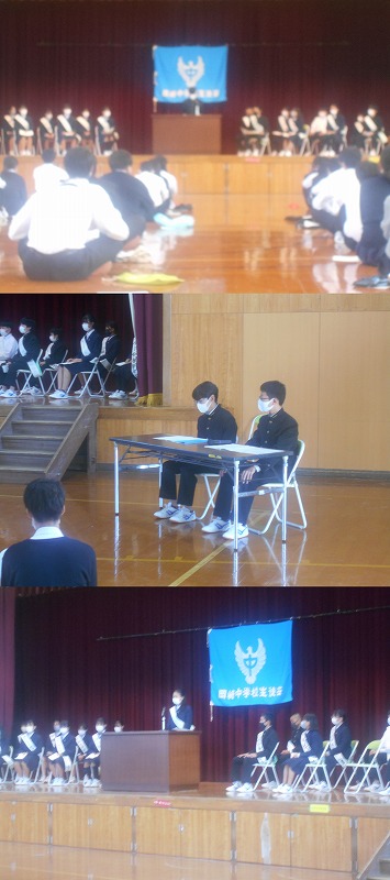 1,2年生より21名の立候補者があり,只今 立会演説会が実施されています