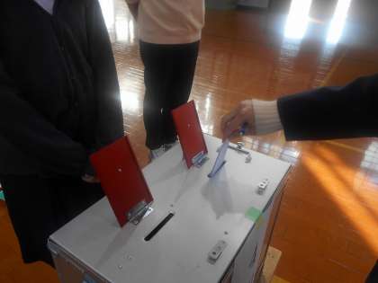 今回は,左京区選挙管理委員会より記載台や投票箱をお借りして,実際の選挙投票により近い形で投票を行っています