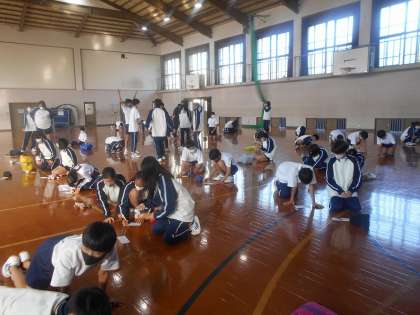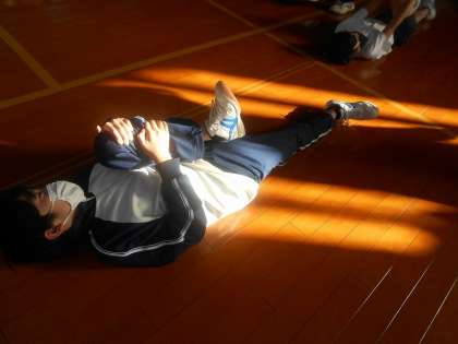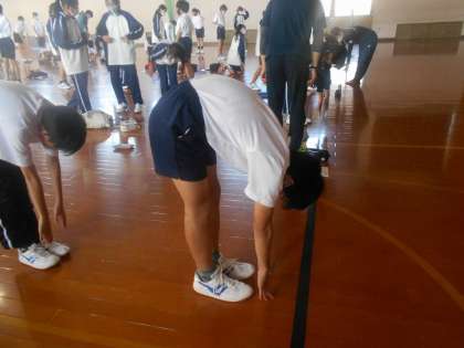 今日は,たちいり整形外科より3名の職員の方がゲストティーチャーを務めていただき「 スポーツによる障害と効果的な予防方法」というタイトルで1年生対象に講演と体験活動を