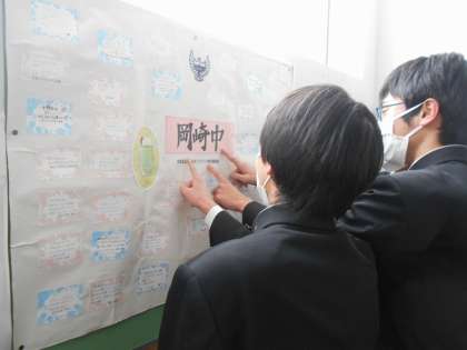 本日,左京区はぐくみネットワーク様より3年生に向けた「はげましメッセージ」が届きました。まもなくそれぞれの進路に向けてチャレンジを迎える3年生にとって心の温まるもので3年生も掲示板の前で立ち止まってメッセージを読んでいました。