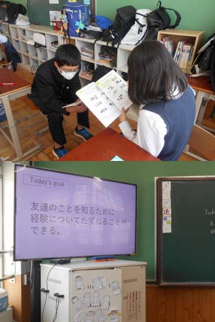 明日からはGW後半の5連休です。今朝は3年3組の英語の授業を見学しました。この時間の目標は「友達のことを知るために経験についてたずねることができる」ということで,ペアの生徒に「あなたはこんな経験したことがある?」という内容の質問と,それに応じた回答を交互に行っていました(もちろん英語で)