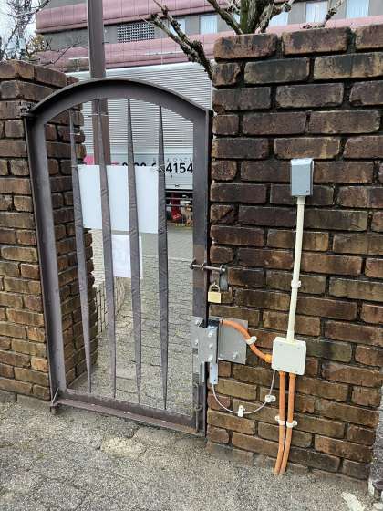 この度,防犯上の観点から,また,安心・安全な学校づくりのため,通用門(校門横)に「電子ロック錠」が設置されることとなり,その取付工事が昨日完了いたしました。
