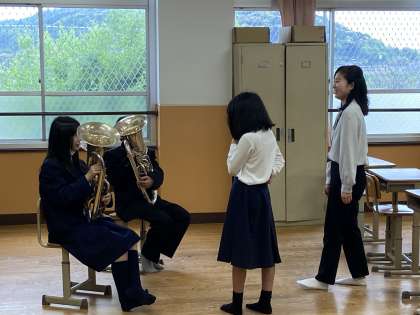 そんな中,校舎内を巡っていると吹奏楽部が楽器のパートに分かれて空き教室などで練習をしていました。