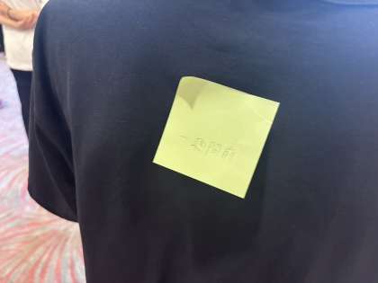 写真は「NGワードゲーム」。それぞれの背中に貼られてあるNGワードを言ってしまうと負け、というゲームです。わいわいと楽しそうに盛り上がっていました。