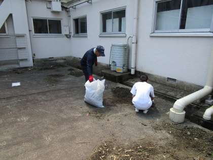 4日間の体験も折り返しです。今日は、学校に登校した生徒たちが側溝の中の土をきれいにする作業を手伝ってくれました。