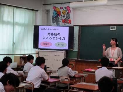 1年生は「思春期の心の変化を理解し、その変化と付き合い方について考える」を目標に、2年生は「望ましい交際について考える」をテーマにそれぞれ性教育を行いました。中学生になり、体も心も大きく変わり、成長していく時期を迎えています。自分の変化と向き合い、幸せな人生を送るために大切なことをしっかりと考えてほしいと思います。