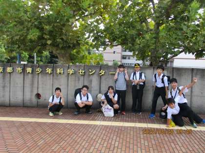 1組のみんなが、伏見区にある科学センター学習で理科の学習をしてきました。台風の接近が心配されていましたが午前中は良い天気に恵まれ、楽しそうに学校を出発し、プラネタリウムを見学したり、実験をしたりと一生懸命学習に励み、そして元気に帰ってきてくれました。