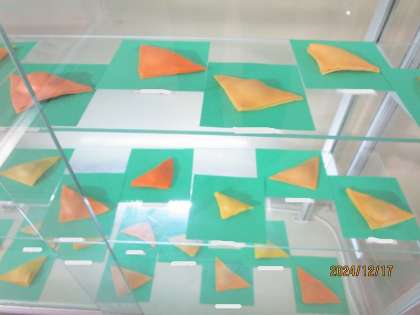 本館玄関の右に作成した八つ橋を展示していますので、懇談で来校された際にでもぜひご覧ください。