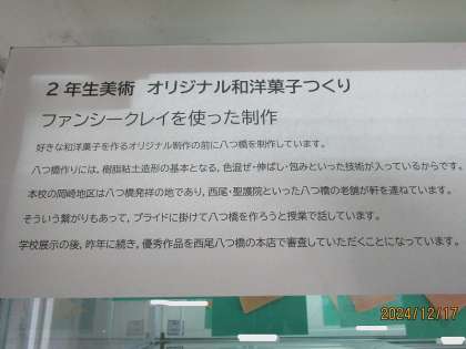 学校展示の後、優秀作品を「西尾八つ橋本店」様に審査をしていただく予定をしております。