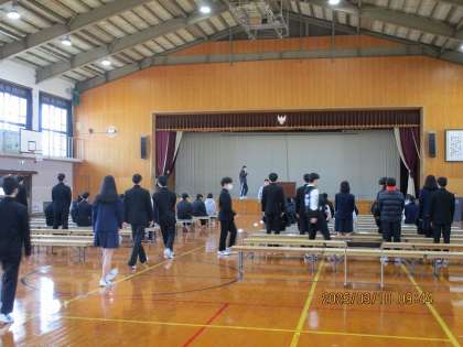 初日の今日は、全体の流れ、作法について、そして卒業証書授与の流れを確認し、練習を行いました。