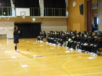 上級生から、1年生に教室で使う文具などが手渡され、これから始まる中学校生活を実感していたことと思います。