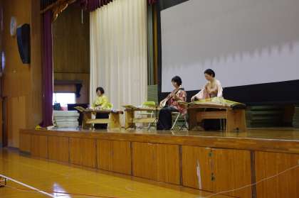 午前中は、講演会としてお箏の演奏や各学年の総合の時間の取り組みのまとめの発表会でした。