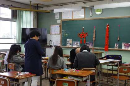 この講座は地域の方々を中心にボランティアの方にご協力を頂き開講していただいているもので、毎年約20個の講座が開かれ、生徒自身が選んで受講します。