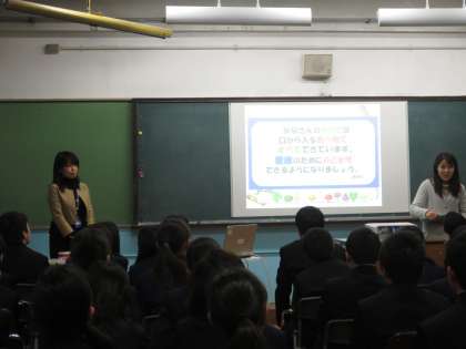 1月22日 2年生は,京都市教育委員会 体育健康教育室から指導主事の先生を招いて,「食事と栄養について」と題して,講演いただきました。