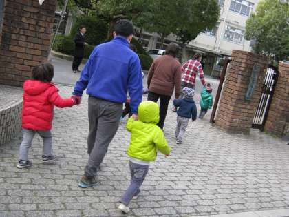 近くの錦林保育所の園児74名も,避難場所として,本校に集まりました。