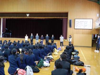 その後,新しい担任の先生と部活動顧問が紹介され,最後は生徒会の代表から,「3年も2年も昨年よりさらにがんばりましょう」と呼びかけがありました。
