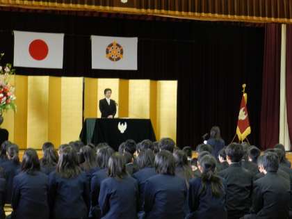 学校長より式辞として,創立以来,本校の校訓としている「自由・自律・友愛」についてのお話とお願いを1つ述べました。