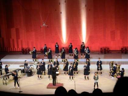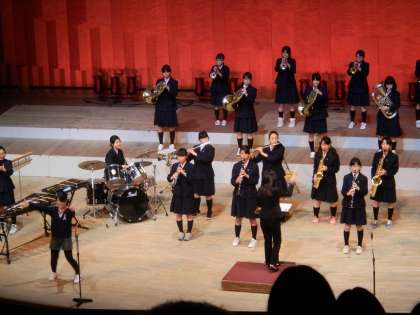 私立中学校も含む左京区の吹奏楽部が一堂に会して楽しい演奏を聞かせてくれましたが,岡崎中学校の吹奏楽部も趣向をこらした演奏を行ってくれました。