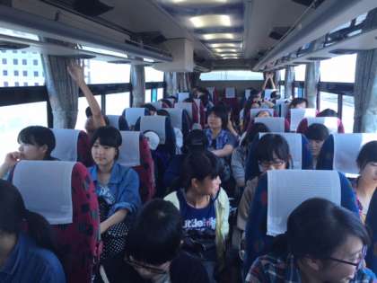 富士山ろくの体験場所に向かうバスの中の光景です。