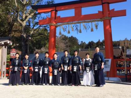 剣道部は上賀茂神社にて、稽古の演武を行いました。