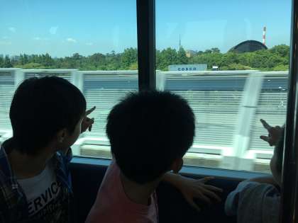 移動中の車窓より、遠くには、明日訪れる東京スカイツリーが見えています。