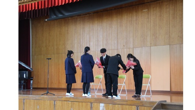 そして、生徒会本部の生徒の皆さんからのお別れの言葉があり、最後に花束を贈呈し、全校で花道を作って見送りました。