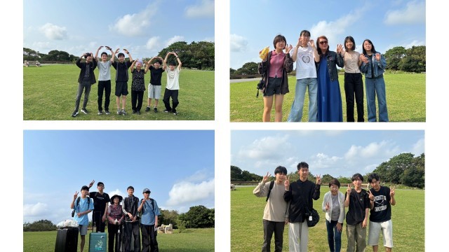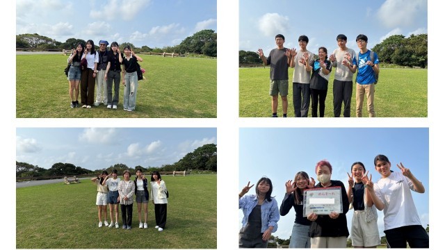 すっきりと晴れた青空の下、民家の方々に送っていただき、グスクロード公園に集合しました。