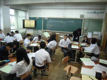 1年生では,6時間目の学活の時間に,「京都人権新発見」のための役割分担と調べ学習が行われました。この取り組みは,「人権意識を高めること」「体験参加型の人権学習を行うことで,人権についての考えを深めること」「社会のルール,マナーを学び,各自の責任と役割を果たし,仲間とのより良い人間関係を築くこと」などを目的に行われるもので,7月7日(金)が本番となります。各班に,タブレットパソコンが1台配られ,自分たちの班が行きたい目的地を調べました。写真はその様子です。