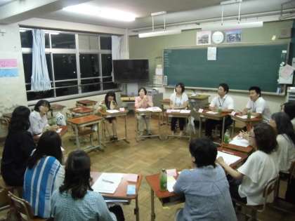 19:00からPTA地域委員会主催の学年交流会が行われました。約60名の教員と保護者の方が,生徒を取りまく環境について意見交流を行いました。まず,全体会で生徒指導と学習指導の担当者,各学年の主任から現状についての話があり,その後,学年に分かれて懇談会が行われました。最後に,もう一度1つの部屋に集まり,各グループで話し合われたことの共有がありました。学習のこと,進路のこと,携帯電話のルール,おこづかいのことなど,活発な意見交換ができました。お忙しい中お越しいただきありがとうございました。