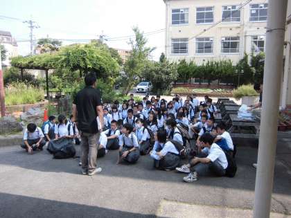 1年生は,「京都人権新発見」に取り組みました。1クラスが6つのグループに分かれ,あらかじめ計画を立てた「京都人権ゆかりの地」のうちのいくつかをバスで回り,途中で昼食をとり,学校に戻ってくるというものです。写真は,出発前の様子です。全てのグループが,無事高野中に戻っています。
