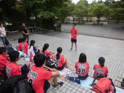 昨日と今日の2日間にわたって,運動部活動では最初の夏季大会となる,陸上競技部の夏季大会が京都市西京極総合運動公園陸上競技場行われました。3年生にとっては。この大会が最後の大会となりました。試合後のミーティングでは,引退する3年生から後輩に向けて,「同じ学年の部員がいないというしんどさがありましたが,一緒に横を走ってくれるたくさんの後輩がいて,自分は,本当に幸せ者だったと思います。最後の大会では,互いに励まし合い,やり切ることができました。自分としては,この大会で自己ベストタイムが出せてよかったと思っています。そして、たくさんの人たちと関わり合い、支えられたと思います。ありがとうございました。」とメッセージが伝えられました。後輩からは,お世話になった先輩へ,自分たちをささえてくれたことのお礼の言葉と,一人一人からのメッセージが書かれたノートが手渡されました。放課後の限られた時間の中,生徒会活動と部活動を立派に両立させてくれました。