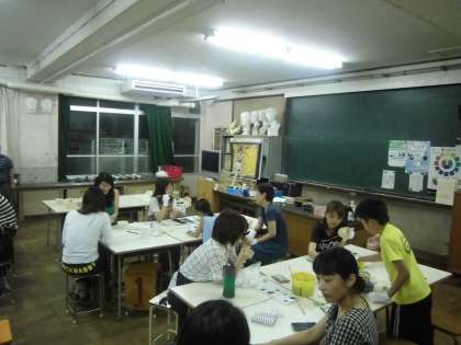 本日19:00より美術室で,PTA学年委員会主催の陶芸教室が行われました。参加者各自が,思い思いの絵や模様のデザインを持ち寄り,アーティスト気分で器に絵付けを行いました,講師は,本校美術家の教員がつとめました。体験時間は約1時間30分で,自分だけの器をデザインしました。小学生も4人参加してくれました。完成した作品の中には,個性的な器に仕上げられたものもありました。なお,完成作品は,文化祭で生徒作品とともに展示される予定です。製作中の様子や作品のいくつかをご紹介します。