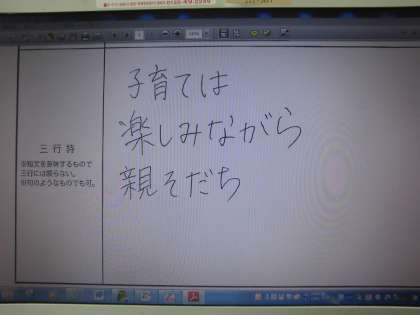 「楽しい子育て全国キャンベーン」〜家庭で話そう!我が家のルール0家族のきずな0命の大切さ〜三行詩募集において,高野中から応募した7作品の内の1つが,京都市の代表作品の一つに選ばれ,東京に送られることになりました。この作品は,高野中PTAの今年のスローガンである「Together〜育て,親育ち〜」を三行詩にしたものです。とてもシンプルに,こうありたいという願いが込められています。「子育ては,楽しみながら,親育ち」