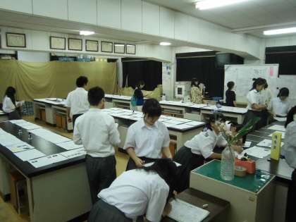 理科の教科展示です。夏休み中に製作したレポートが展示されています。黒板には,最優秀作品の中からさらにすぐれたものを高野賞として展示してありました。2年生が受賞していました。