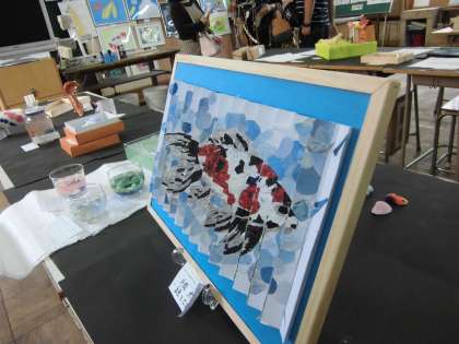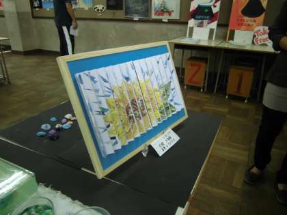 美術科展示教室の中にあった作品を紹介します。1枚の絵が,右から見たときと,左から見たときとで違います。皆さんには,何が描いてあるように見えますか。