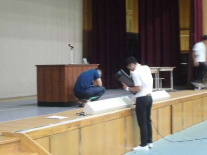 休憩時間中も舞台発表担当教員は,次の発表のための準備に大忙しです。
