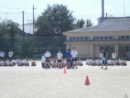 体育祭を間近に控え,3,4時間目には,全校体育が行われました。プログラムに沿って動き方を確認し,生徒たちは,本番さながらに学年種目や色別種目の入退場や応援に取り組み,本番に向けいよいよ盛り上がってきました。