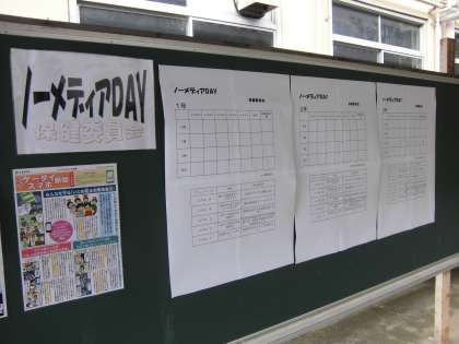 生徒の皆さんにとって,昨日のノーメディアデーの取組結果はどうだったでしょうか。今日の終学活で一人一人が結果についてアンケートに答えてくれます。さて,ノーメディアに取り組むことによって,できた時間をどのように過ごせたでしょうか。今後,保健委員会が集計・分析をし,傾向などわかりましたら,生徒・保護者の皆さんにお知らせしたいと思います。