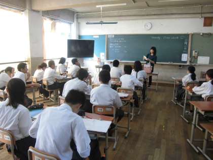 1年生の英語の授業です。昨日テスト返却があり,今日から次の定期テストに向けてのスタートです。「学校のホームページ」スピーチコンテストです。7文の英文を1分間で正しく読むことができることを目標とします。何度も音読練習をすると,英文を覚えることができます。また,音読することで聞く力が鍛えられます。