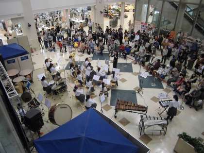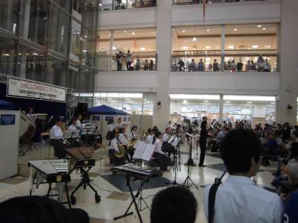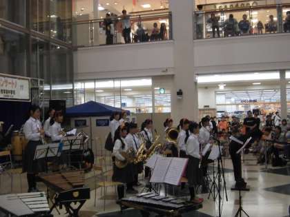 吹奏楽部は,午後1時30分より,カナート洛北で演奏する機会をいただきました。3年生の先輩たちの引退後,1,2年生部員だけで演奏するのは,たくさんの先輩たちや在校生,保護者の方から,応援をいただきました。引退した3年生の先輩が,手拍子をするなど演奏を側面的に支援してくれました。