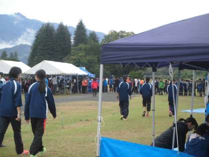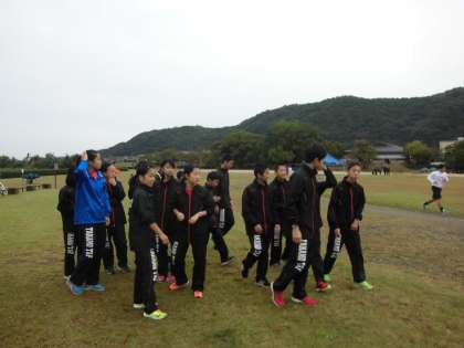 雨の中,嵐山東公園を会場に,京都市駅伝競走大会が行われました。女子は昨年度より順位を二けた近く上げてくれました。男子も持てる力をすべて出し切りました。保護者の方にもお忙しい中を応援に駆け付けていただきありがとうございました。写真は,出発の際の位置の抽選の様子,念入りに体操・ストレッチをしている様子です。