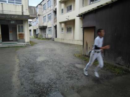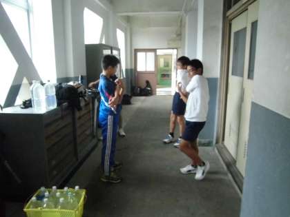 雨が続きます。普段グランドを使って練習している部活動は,校舎や中庭を使い,トレーニングに励んでいます。その様子を紹介します。まず,男子テニスと野球です。
