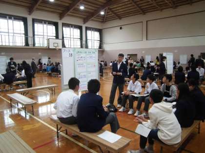 生きチャㇾポスターセッション発表会の続きです。聴衆の係をつとめてくれた中1生や小6児童からも質問がありました。