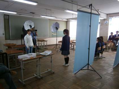 今日の午後は,3年生の卒業アルバム用の学級集合写真と進路用の写真撮影がおこなわれています。進路用の写真撮影では,服装,頭髪,身だしなみに十分に気をつけ,少し緊張した表情でカメラの前に立っていました。