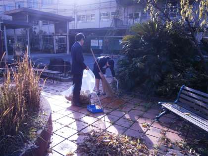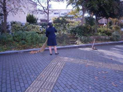 高野中では,13名の学生ボランティアの方に,「学習の補助」「部活動指導の補助」「校内の環境整備」等でお世話になっています。自分の授業のない時間帯に来て頂いています。今日のボランティアさん(3名)は,1〜3時間目に来てくれました。1時間目は,学校内外の落ち葉清掃をしてくれました。