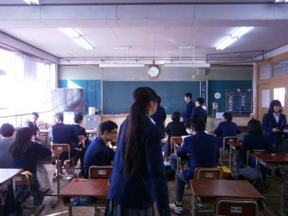 先週末で終わった期末テストの返却が行われています。写真の教科では,教員からの問題についての解説の後,模範解答を受け取り,自分でもう一度見直しをしていました。考えながら赤ペンで間違い直しをしていました。